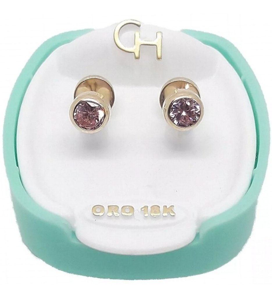 Aros Abridores Bebe Tubo Piedra Rosa 5mm Ch 193 Oro 18kts